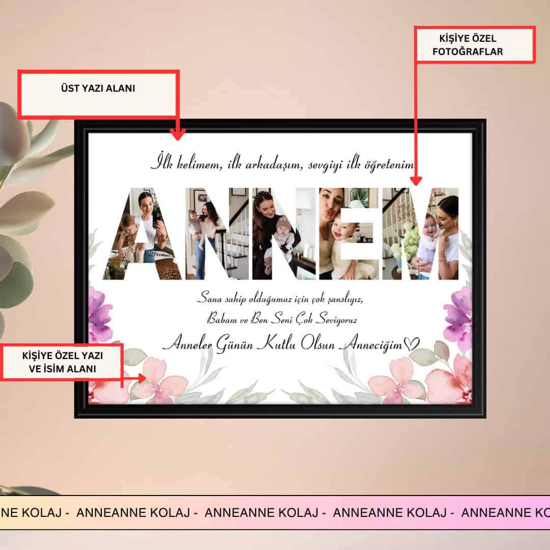 Anneye Doğum Günü Hediyeleri ANNEM TABLO. Tamamen kişiye özel olarak hazırlanan ve 4 adet fotoğraftan oluşturulan kişiye özel ANNEM tablo, aynı zaman da Anneanne, Babaanne, Dede , Kardeş için de hazırlanabilmektedir. Tasarım ürünlerimizi Web sayfamızdan veya instagram sayfamızdan inceleyebilirsiniz. İnstagram sayfamızda da birçok örneğimiz mevcuttur.