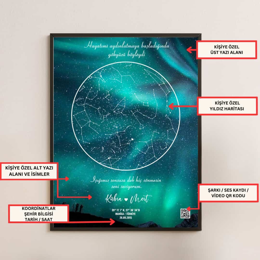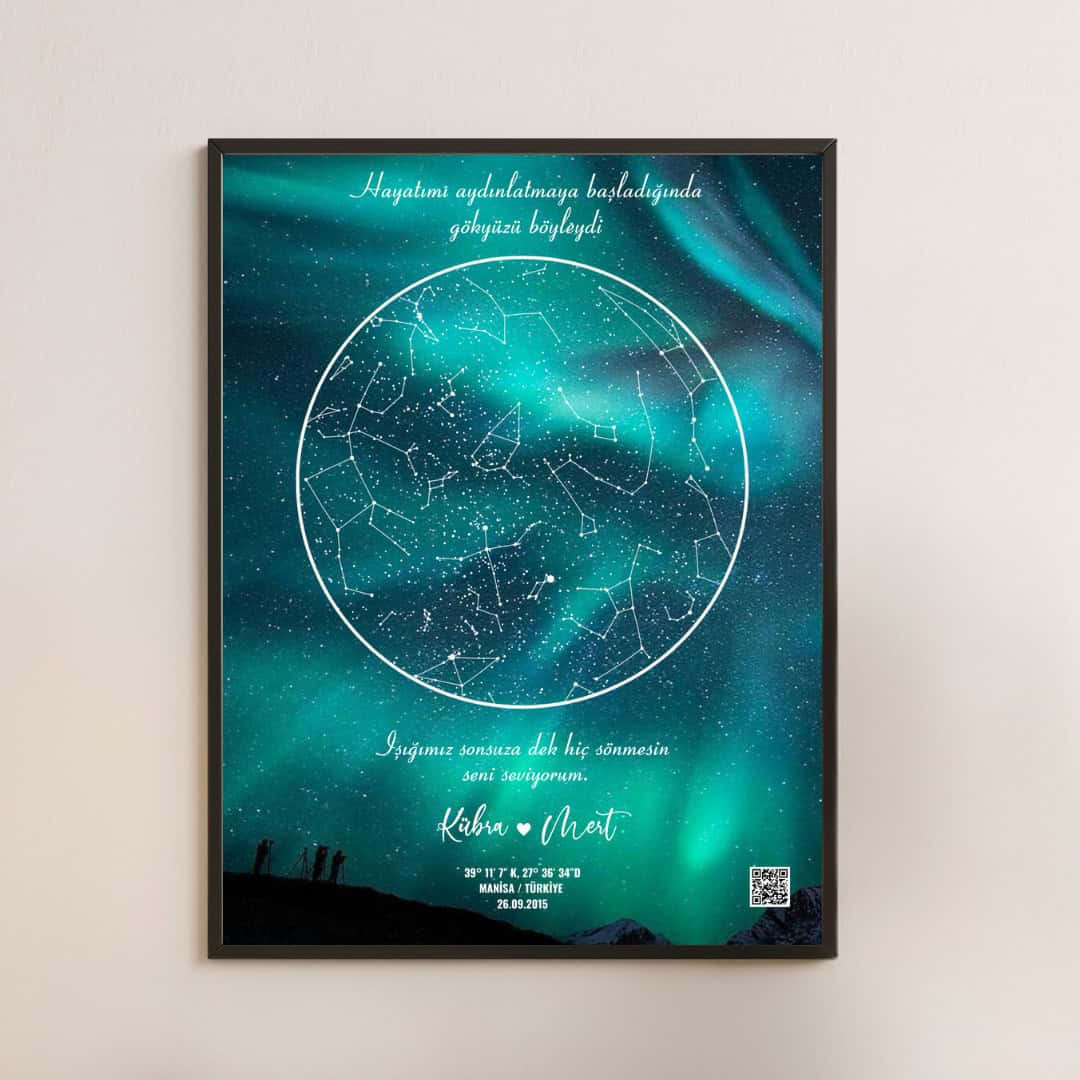 Sizin için unutulmaz olan ”O AN”ı ölümsüzleştirmek istemez misiniz? Sevdiğiniz kişiyi mutlu etmek istiyorsanız bu kişiye özel yıldız haritası tam size göre! Sevdiklerinize verebileceğiniz en özel hediye o unutulmaz günlerinizin gökyüzü görüntüsü. İster doğum günü, ister yıl dönümü için mükemmel bir hediye. Sevdiğiniz kişiye kendisini özel hissettirmenin tam zamanı!